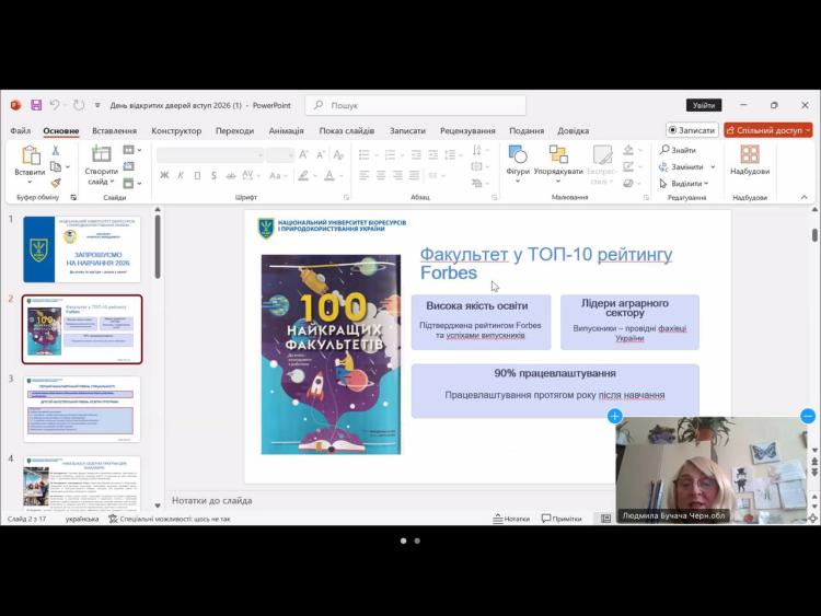 Захід відбувся в межах профорієнтаційної роботи НУБіП України та був присвячений темі «Від вибору професії до успішної кар’єри: освітні програми НУБіП України». Учні ознайомилися з можливостями вступу до університету, особливостями освітнього процесу та перевагами навчання в одному з провідних закладів вищої освіти України.