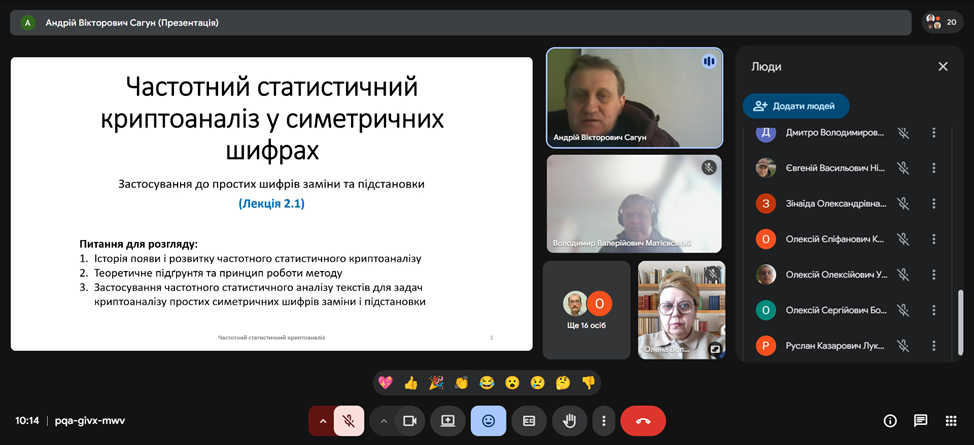 В ході проведення відкритої лекції з дисципліни «Основи криптоаналізу» на тему: «Частотний криптоаналіз у симетричних шифрах».