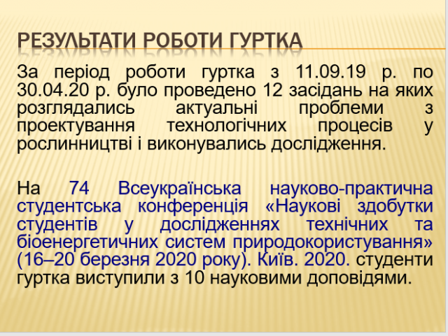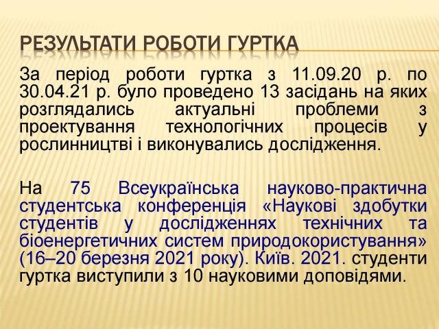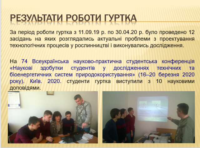 Науковий гурток "Проектування технологічних процесів у рослинництві"