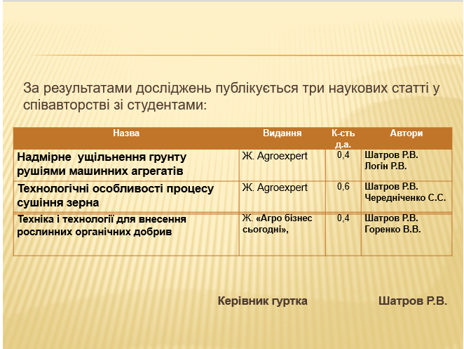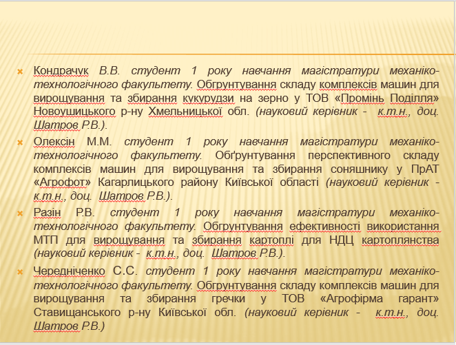 2. Інноваційні механізовані технології у рослинництві | 29.092016 | Шатров Р.В. | |