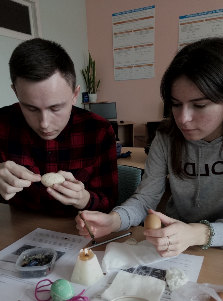 Доцент кафедри економічної кібернетики Коваль Тетяна Валеріївна провела виховну годину на якій познайомила студентів 2 курсу спеціальності «Економічна кібернетика» з розписом писанок.