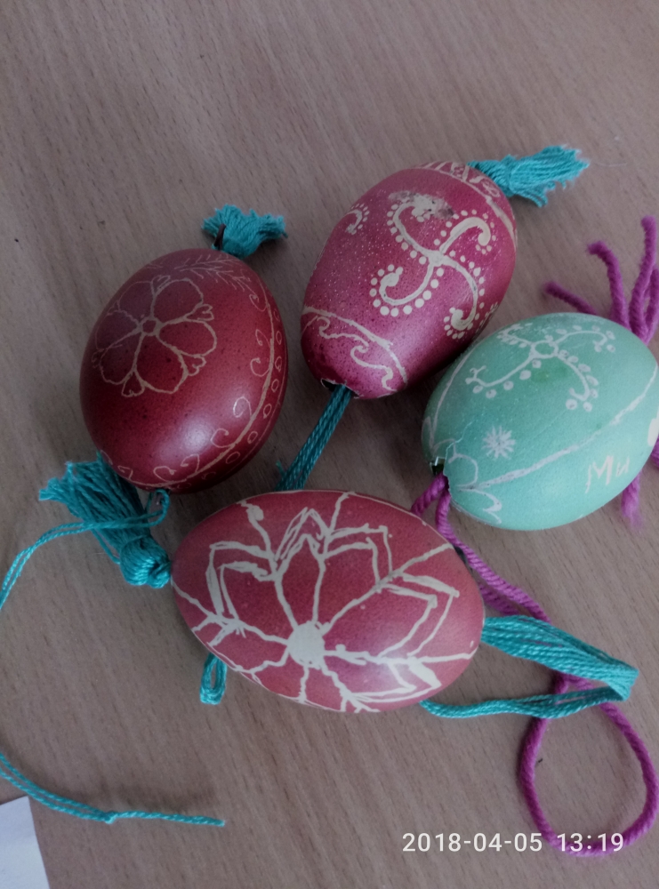 Розпис писанок – найпоширеніший вид декоративно – прикладного мистецтва в українців. Збереження цього звичаю – свідоцтво безперервного розвитку народного мистецтва, його зв’язку з далеким минулим і сьогоденням. Ми продовжуємо використовувати елементи творів давніх українців, додаючи від себе чи то якусь їх давню комбінацію, чи то нове кольорове рішення деталей, а в основі залишаються все ті ж наші прадавні орнаменти, які від початку були не окрасою, а магічними знаками заклинання, охоронцями від злих, недобрих сил, тобто оберегами.