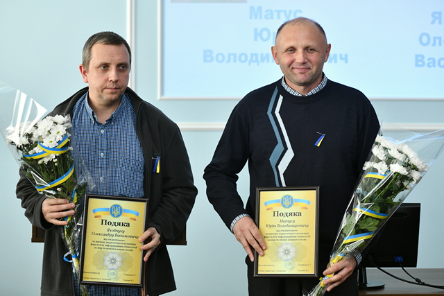 Такі відважні люди працюють і на факультеті Інформаційних технологій. Якобчук Олександр Васильович та Матус Юрій Володимирович, бойові українські офіцери стали на захист Батьківщини. На передовій служить студент нашого факультету Черевко Михайло. Завдяки їм над нами досі тихе і мирне небо. Їх вітали всі присутні студенти, викладачі та студентська організація факультету.
