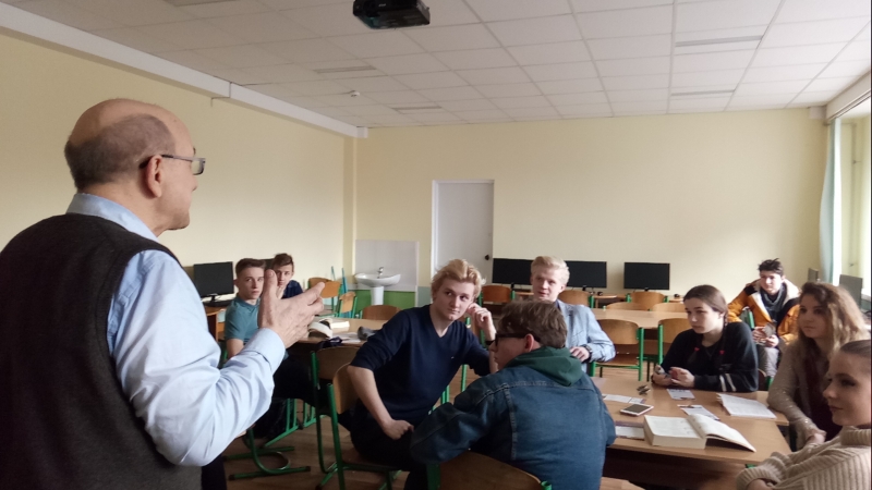 28.02.19 завідувач кафедри економічної кібернетики Андрій Скрипник та доцент кафедри Тетяна Коваль завітали до однієї з найкращих шкіл Голосіївського району – ліцею “Голосіївський” №241, де зустрілись з керівництвом, вчителями та учнями 11 класів.