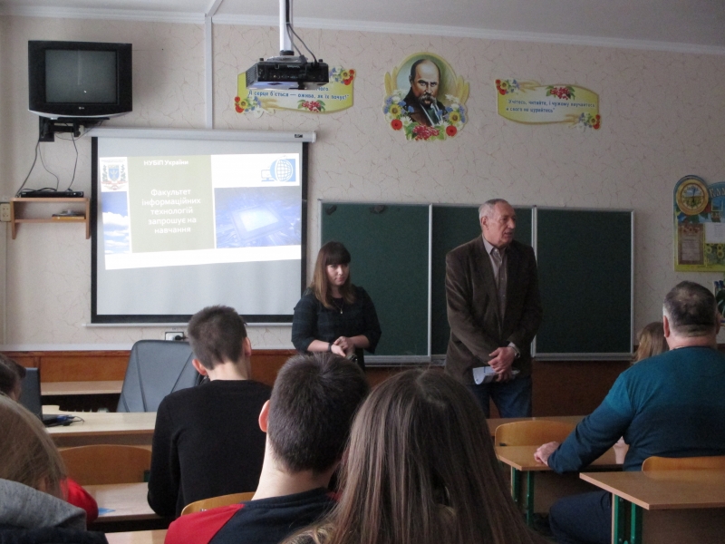 Акцентували увагу майбутніх абітурієнтів викладачі й на перспективах та можливостях від професій, які вони можуть здобути, навчаючись на факультеті інформайних технологій. Також випускники довідалися про предметні олімпіади для вступників, які проводяться в НУБіП України, що дозволяють отримати 20 додаткових балів при вступі, як виявлось, частина з учнів вже попередньо було зацікавлені у вступі до НУБіП України, а тому вже готуються до участі в них. Учням було надано друковані матеріали про університет, факультет та кожну спеціальність.