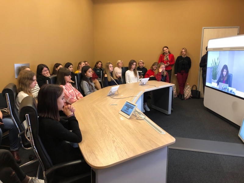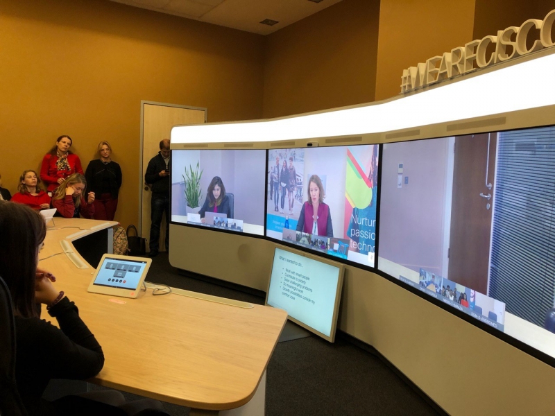 Через систему відеоконференц зв’язку наші дівчатка могли поспілкуватися із GemmaAlcock - Founder& CEO, SkyBoundRescuer та LorenaMarciano - Director, DataProtection&PrivacyOfficer, Cisco. Варто зауважити, що паралельно на зв’язку були дівчата з різних країн, зокрема, Нідерландів, Сенегалу, Італії, Ізраїлю.