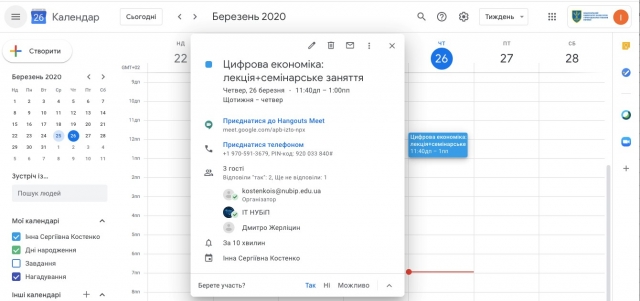 Вибінар проходив в середовищі Google Hangouts Meets.