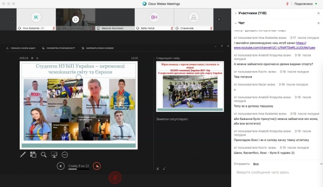 Звичайно серед першокусників виявилися і любителі кіберспорту, такого виду змагання в університеті та на факультеті також проводяться. Далі на студентів чекало не менш важливе питання, про яке не одноразово в чаті під час запитували, - військова підготовка. Про кафедру військової підготовки університету, основні напрями навчання та її матеріальну розповів завідувач кафедри Анатолій Есаулов.