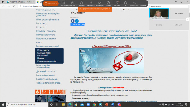 В умовах карантинних обмежень і більше року пандемії, студенти і викладачі звикли до дистанційної роботи, але не можуть змиритися з дійсністю. Особливі випробування випали на вступників 2020 року, сьогодні вони першокурсники, які з третього тижня перебування у ВНЗ навчаються дистанційно, їм найважче. А в умовах жорстких обмежень, коли майже не спілкуються між собою, навчатися дуже важко. Все це впливає на якість студентського життя і успішність, зокрема. Куратори постійно знаходяться на зв’язку з групами в месенджерах, захворюваність турбує особливо. Стало традицією і необхідністю проводити щотижневі онлайн зустрічі з академічними групами «Економічна кібернетика» і «Цифрова економіка» першого курсу. Обговорюємо організацію процесу дистанційного навчання, захворюваність, нагальні проблеми і завдання окреслені деканатом, зокрема вчасна оплата контрактів, результати проміжної атестації, можливості і проблеми ліквідації заборгованості зимової сесії. Плануємо онлайн участь у зустрічах з випускниками кафедри економічної кібернетики і роботодавцями, а також у різних анкетуваннях, щодо адаптаційного входження першого курсу НУБІП України.