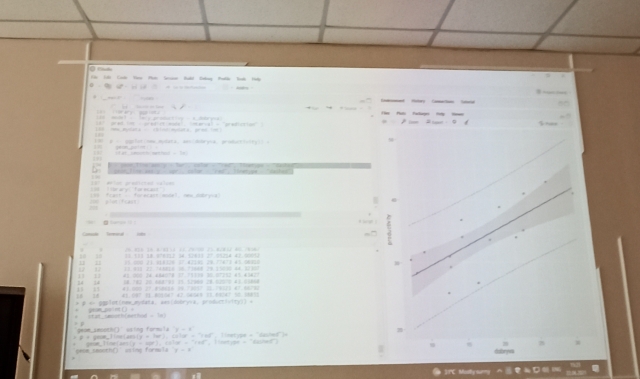 У сфері статистичного та економетричного моделювання було показано приклади використання R для побудови гістограм; розрахунку коефіцієнту кореляції Пірсона та рівня його значимості; оцінку коефіцієнтів лінійної регресії та загальних параметрів адекватності моделі.