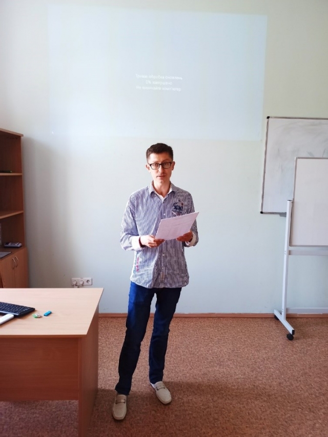 Завідувач кафедри економічної кібернетики Дмитро Михайлович Жерліцин привітав студентів з важливим днем у їхньому житті та побажав всім успішного захисту, а комісії – плідної роботи.