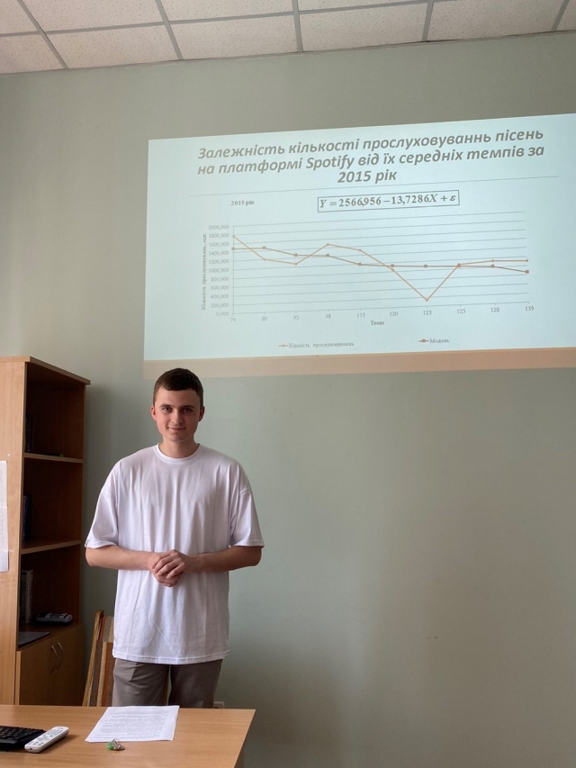 Неординарну та цікаву тематику досліджував Кашевський Андрій. Його робота «Моделювання структури популярних музичних творів у розрізі історичних періодів» дозволила під несподіваним кутом подивитися на перспективи популярності творів та успішності та конкурентоздатності шоу-бізнесу.
