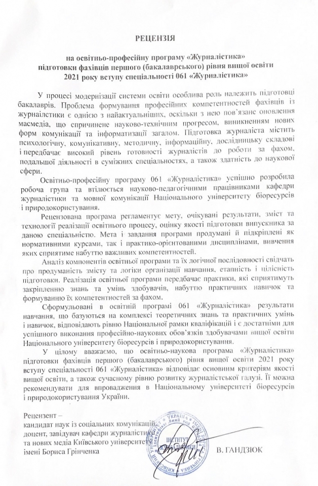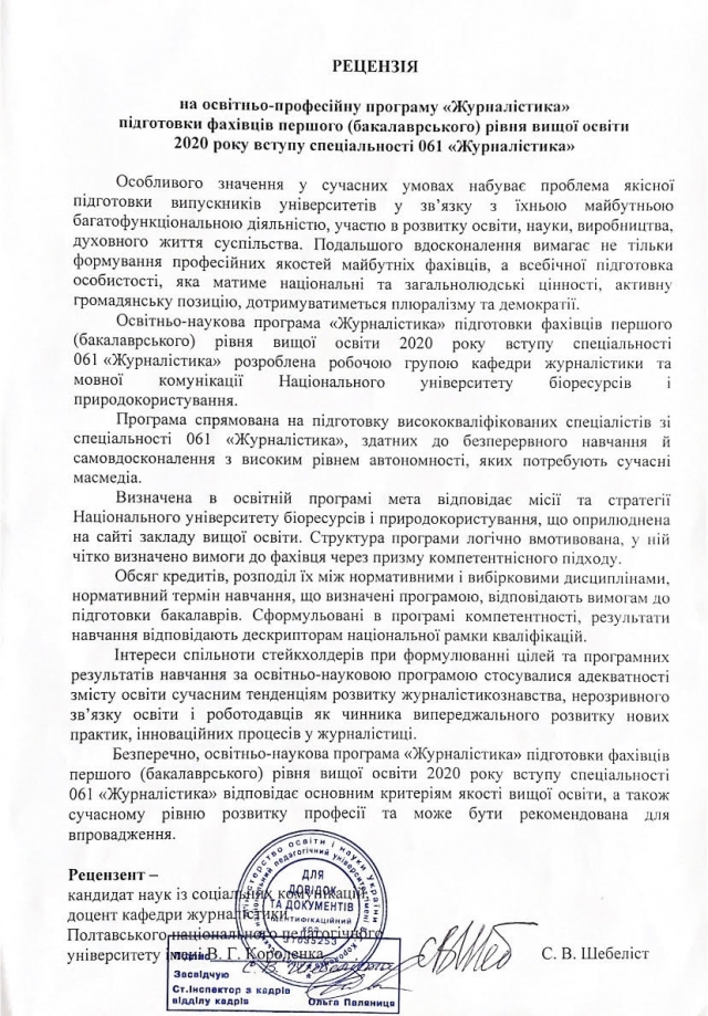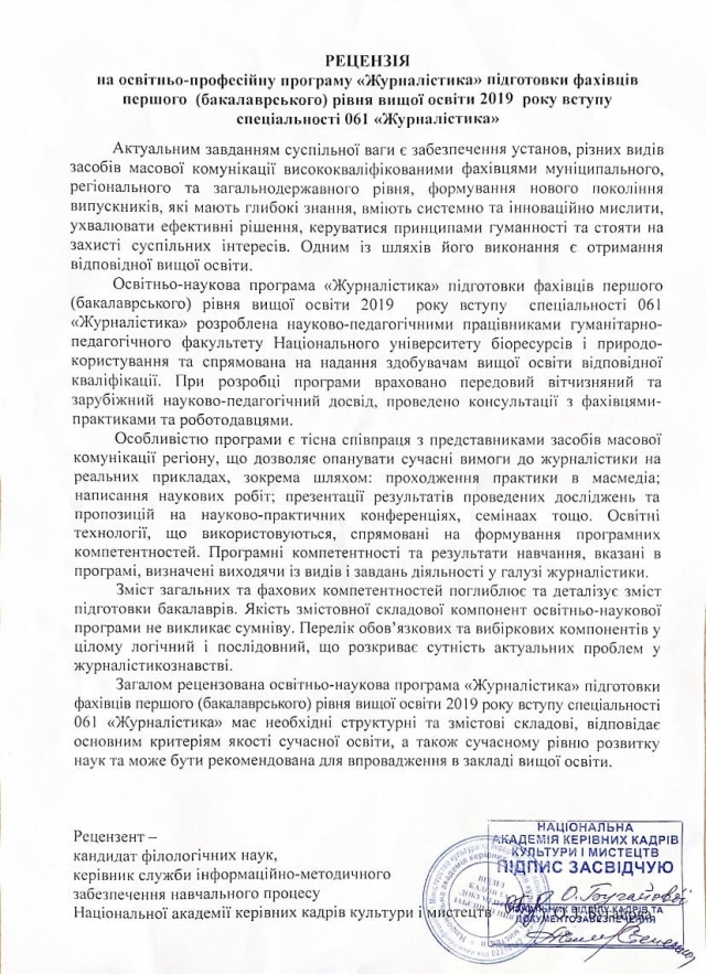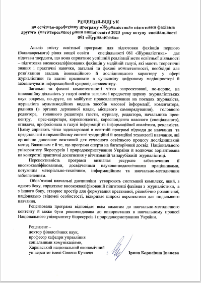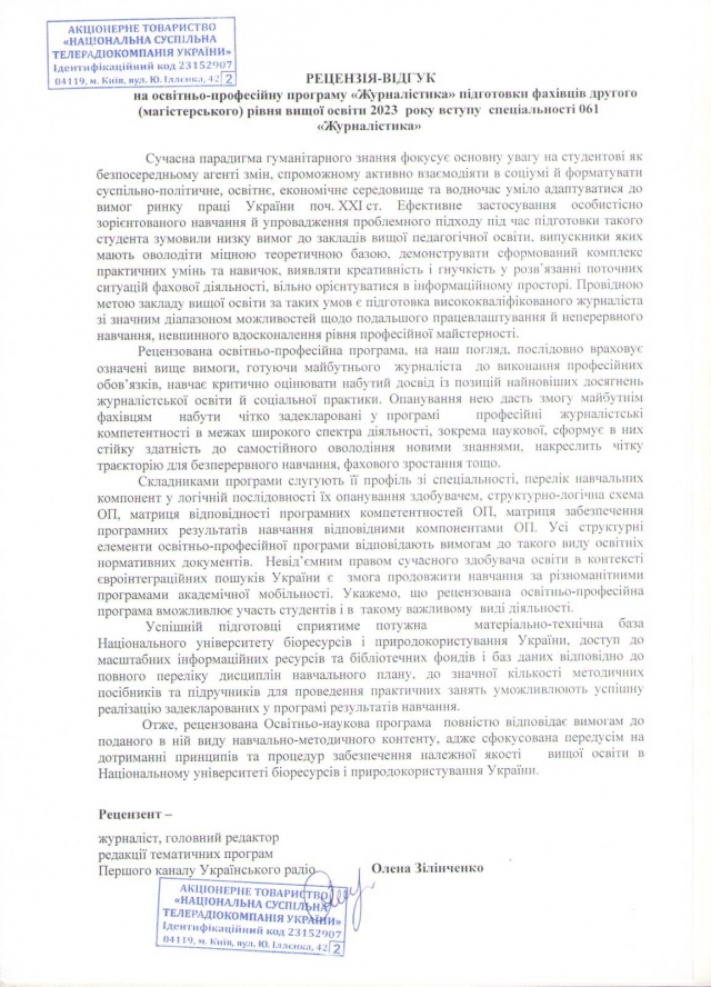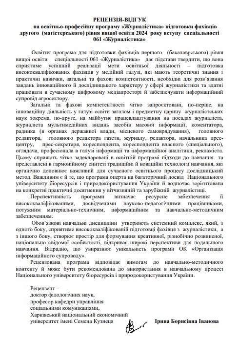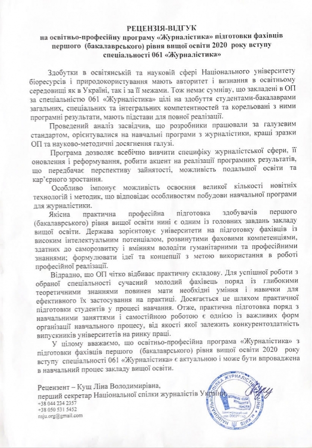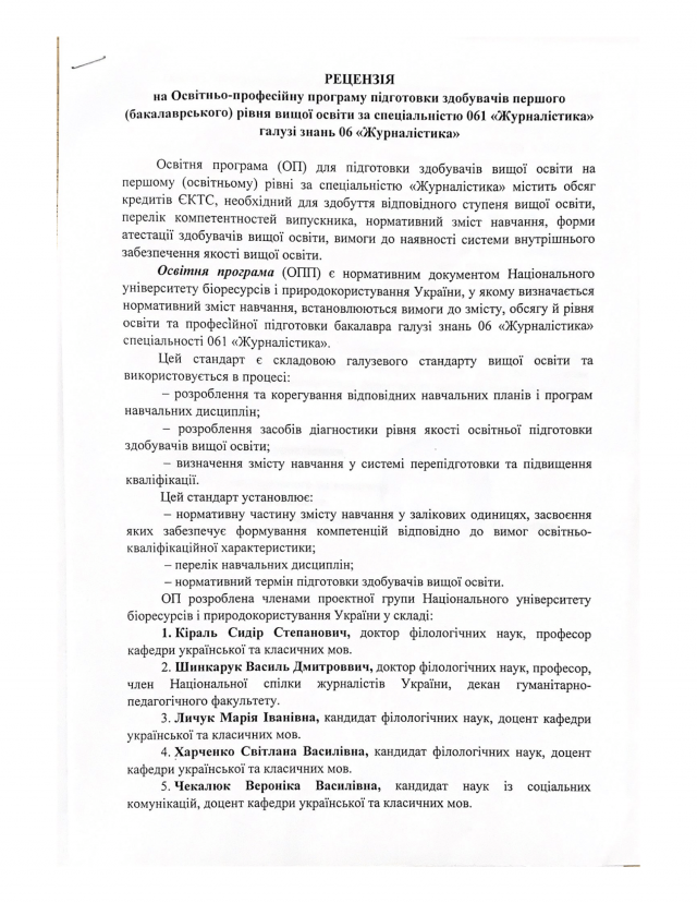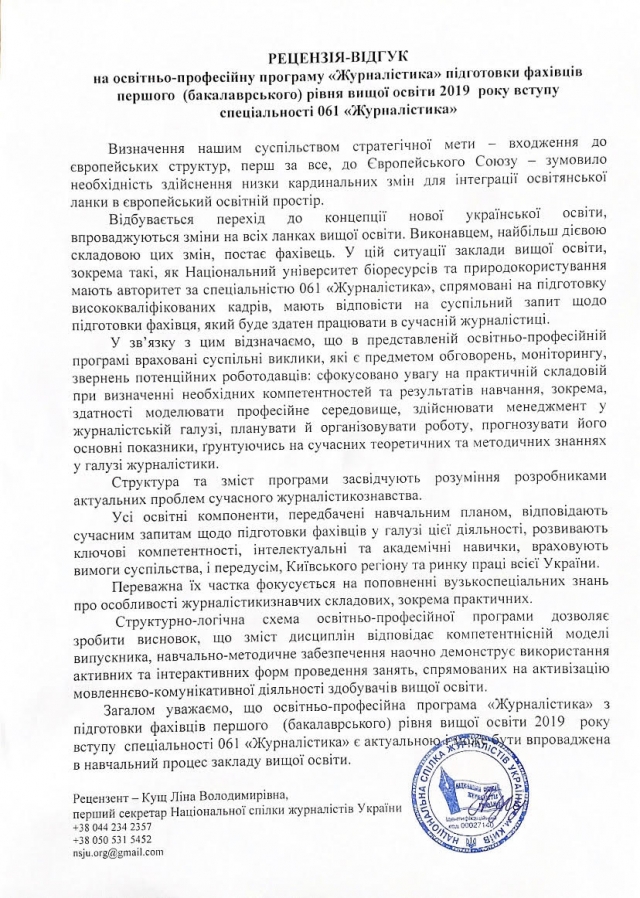 Запрошуємо до обговорення освітніх програм! Просимо пропозиції, рекомендації надсилати на електронну скриньку кафедри журналістики та мовної комунікації Національного університету біоресурсів та природокористування України [email protected], вказавши тему листа: обговорення освітніх програм.
