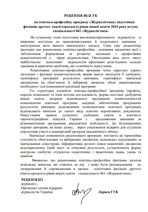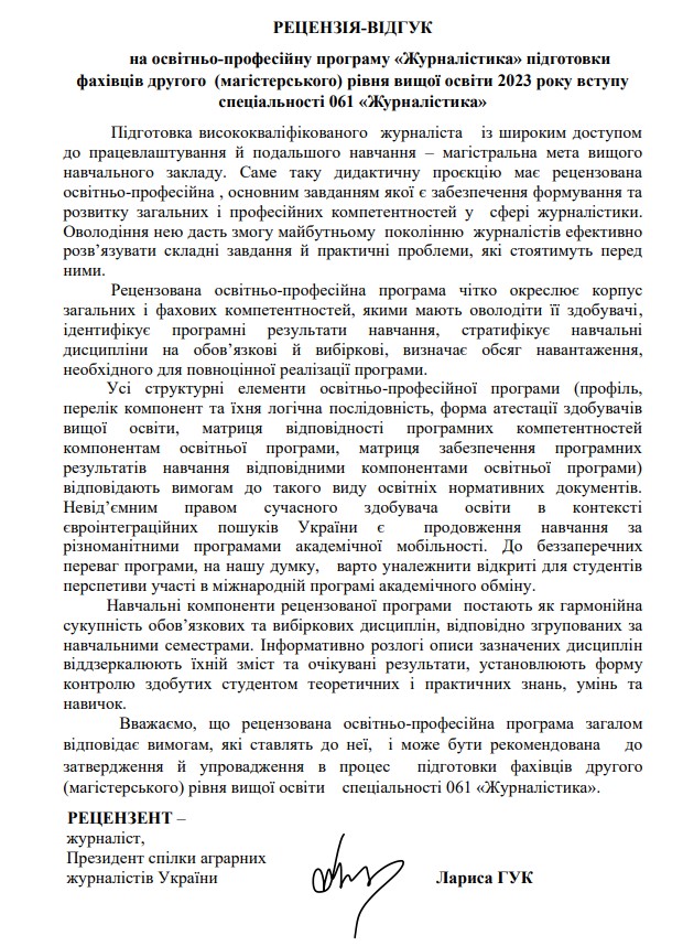 ОП «ЖУРНАЛІСТИКА» другого (магістерського) рівня вищої освіти