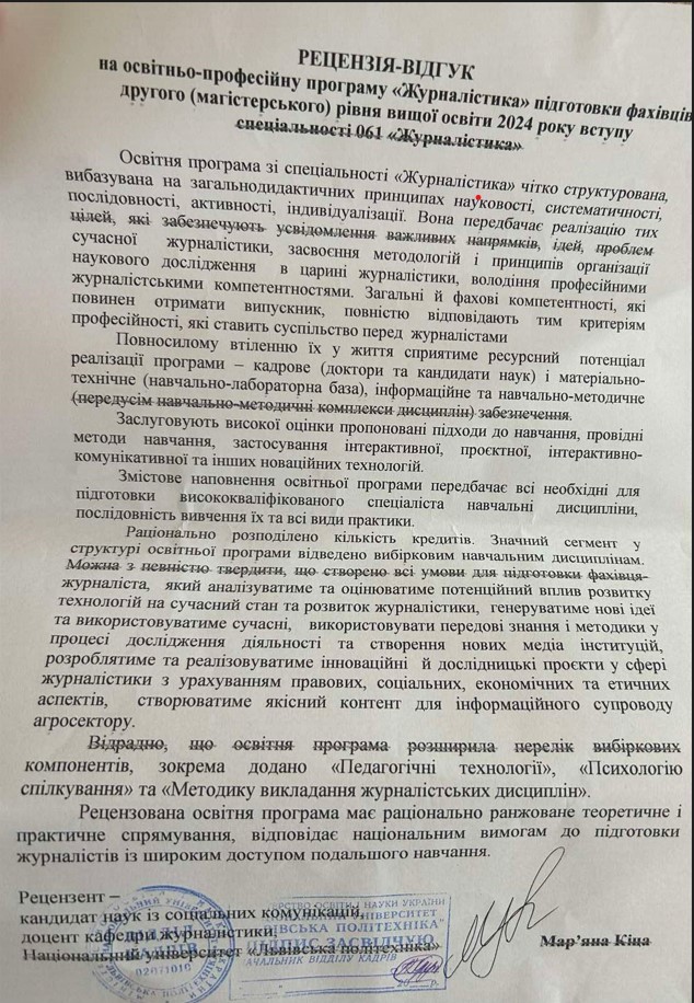 Пропозиції стейкхолдерів щодо нової редакції ОП 061 "Журналістика"