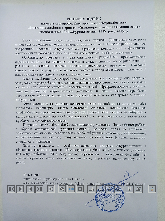 Рецензії-відгуки на освітньо-професійні програми зовнішніх стейкхолдерів