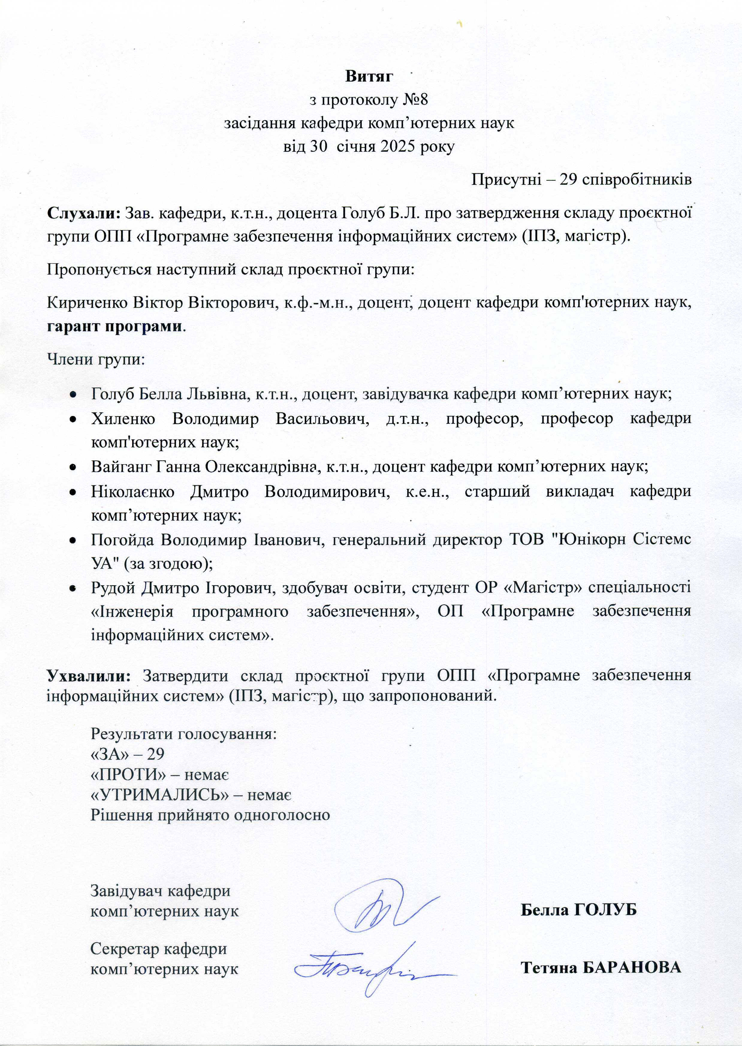 - Витяг з протоколу 8, 2025