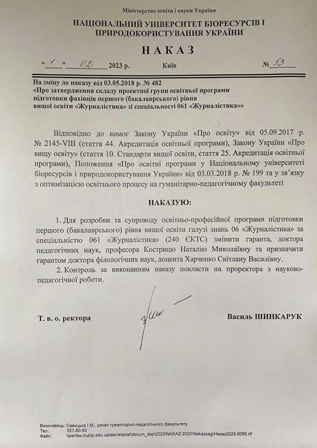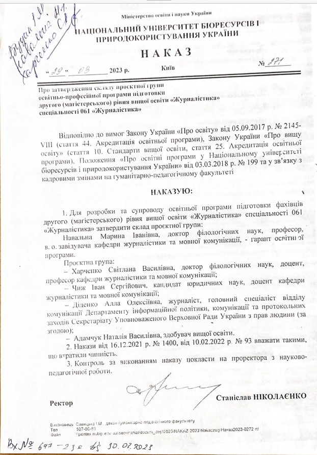 Гарант освітньо-професійної програми – Харченко Світлана Василівна, доктор філологічних наук, доцент (Наказ № 53 від 01.02.2023)