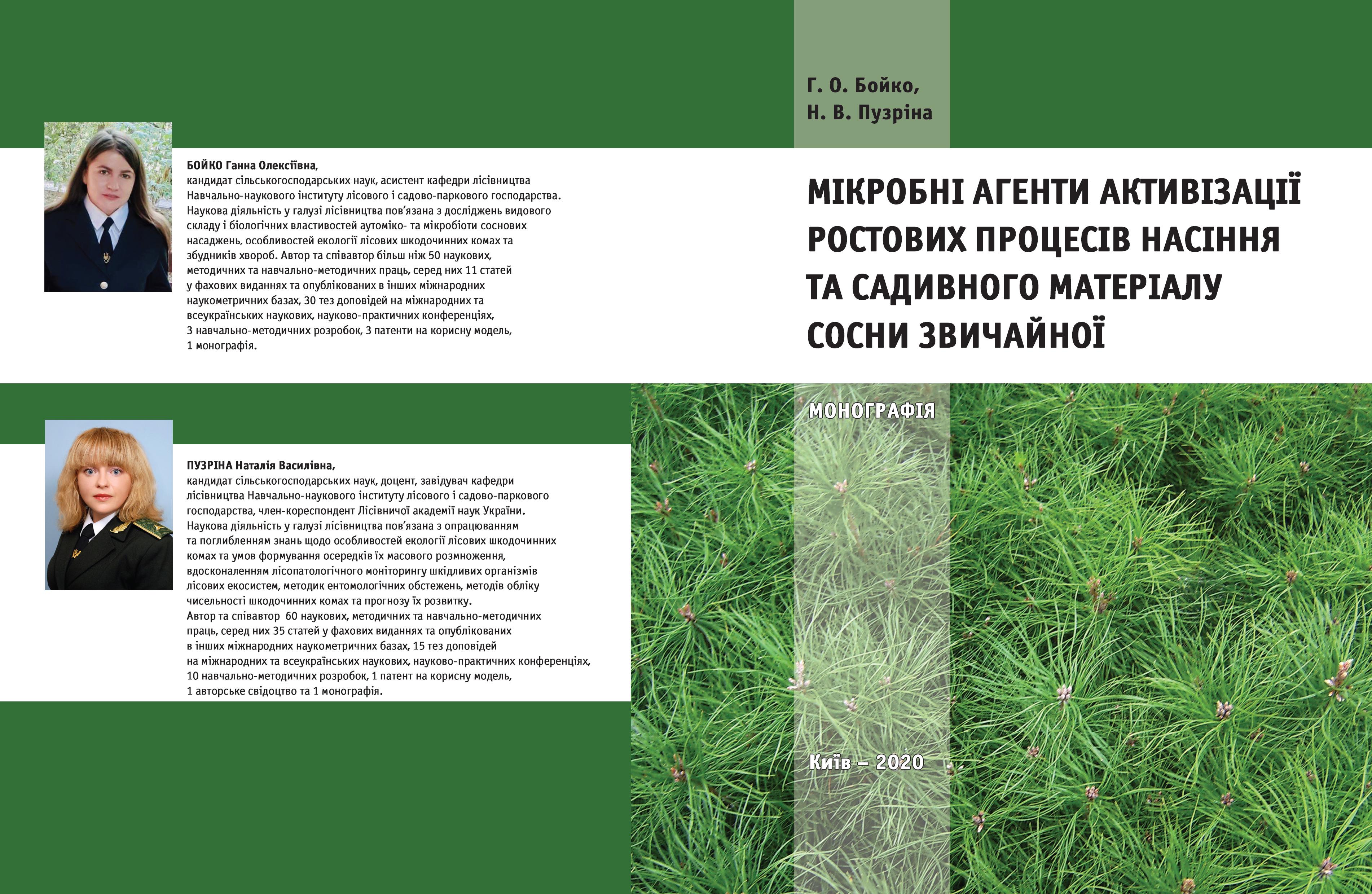 - Бойко Г.О., Пузріна Н.В. Мікробні агенти активізації ростових процесів насіння та садивного матеріалу сосни звичайної: монографія. Київ: Редакційно-видавничий відділ НУБіП України, 2019. 199 с.