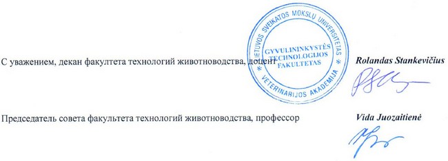 З повагою, Почесний член кафедри анатомії тварин ім. акад. В.Г. Касьяненка, кандидат ветеринарних наук, доцент, начальник Головного управління ветеринарної медицини, головний державний інспектор ветеринарної медицини Полтавської області |