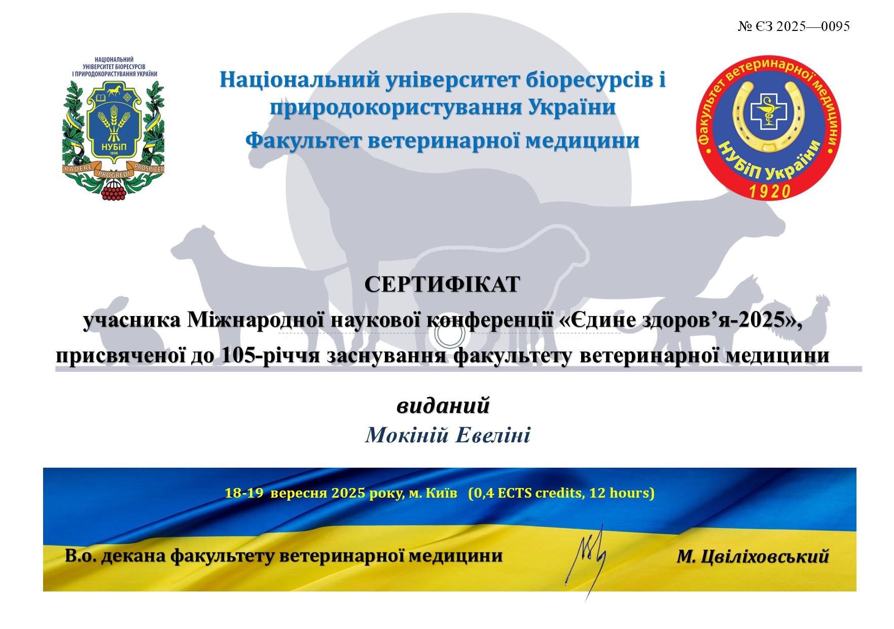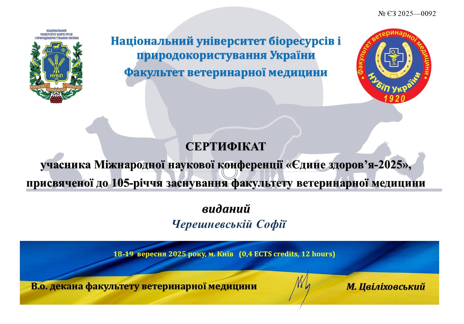 Міжнародна наукова конференція «Єдине здоров’я-2025» присвяченої 105-річчю створення факультету ветеринарної медицини, НУБіП України, 18-19 вересня, 2025 р.
