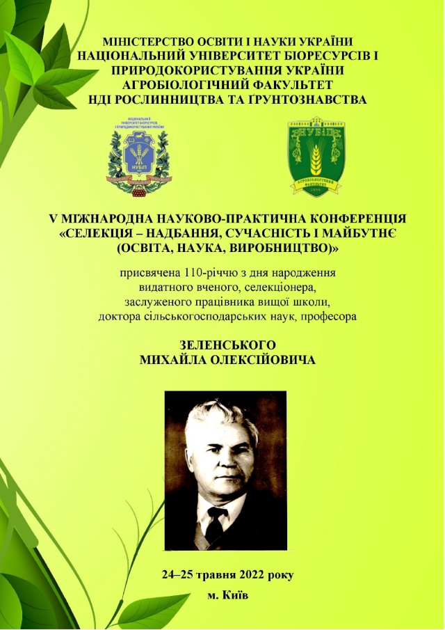 2022 рік - V Міжнародна науково-практична конференція "Селекція - надбання, сучасність і майбутнє (освіта, наука, виробництво)" конференція відбулася 24-25 травня 2022 року присвячена 110-річчю з дня народження видатного вченого, селекціонера, Заслуженого працівника вищої школи, доктора сільськогосподарських наук, професора Михайла Олексійовича Зеленського. Вона зібрала разом близько 200 учасників.