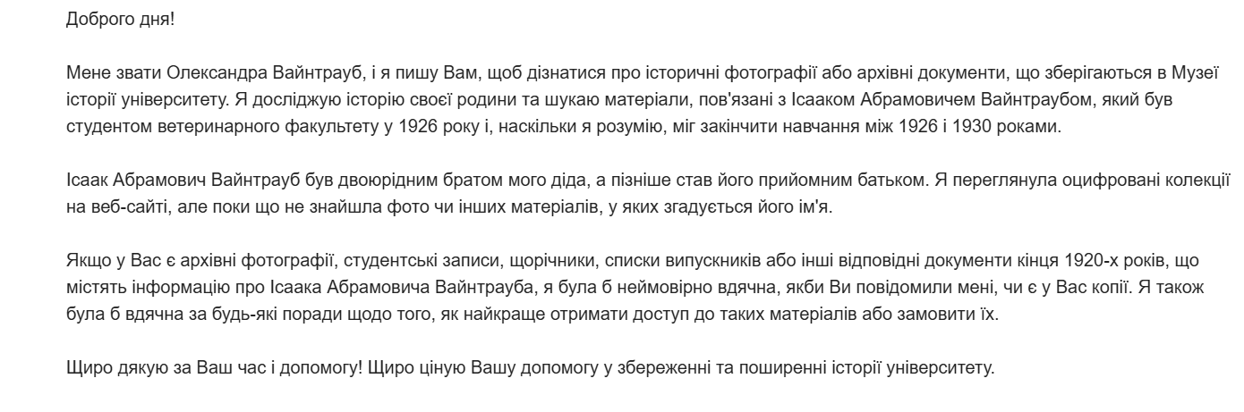 Звернення щодо пошуку матеріалів